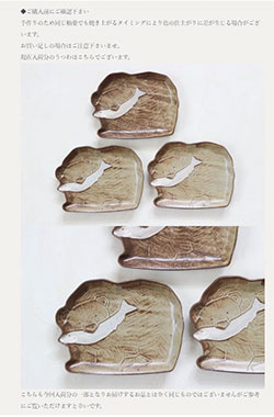 さらに最近では商品の個体差についてご案内する写真も増やすようにしました。商品によっては色の違いや形の個体差があるものがあります。在庫分全ての商品を載せることは難しいですが一部でも在庫分の写真を載せるようになりました。こちらの部分は入荷ごとに差し替えていく予定です。