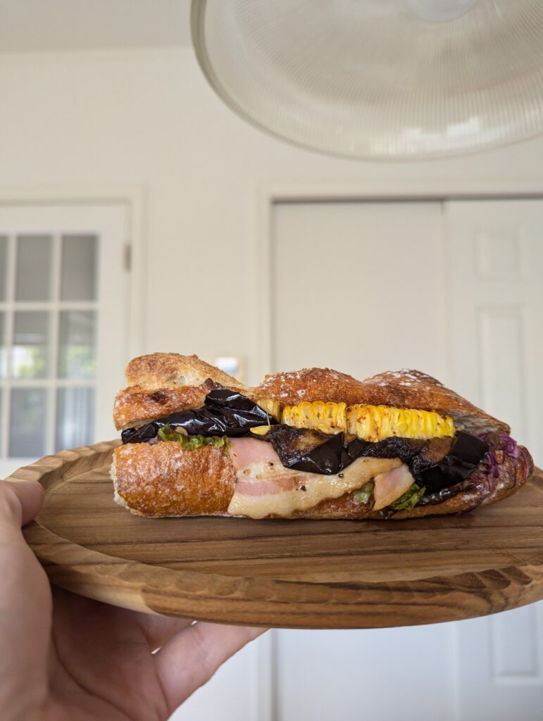 とうもろこしとなす、ベーコンに紫キャベツ…