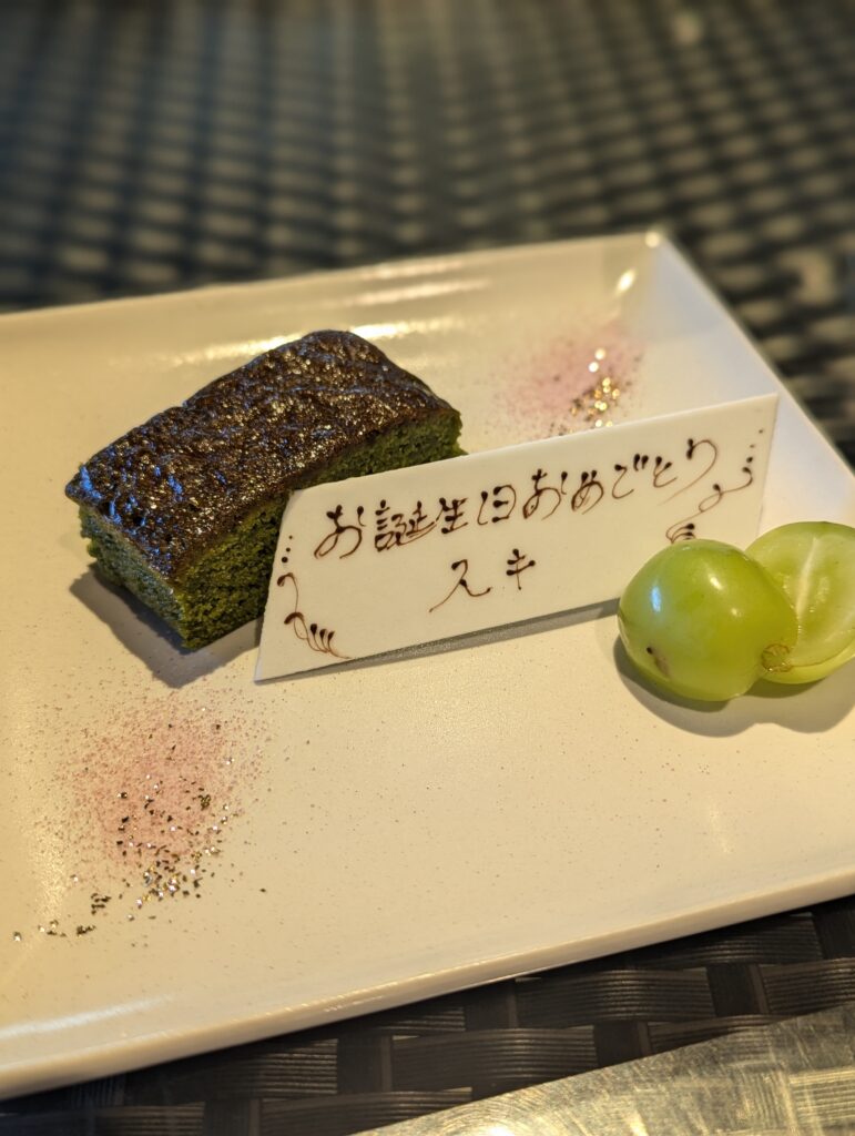 もうすぐ私の誕生日であることを覚えていてくれていた友人がケーキプレートの用意もしてくれていたのですが、添えられていたメッセージの愛くるしさが何とも彼女らしくて思わず笑顔になってしまいました。