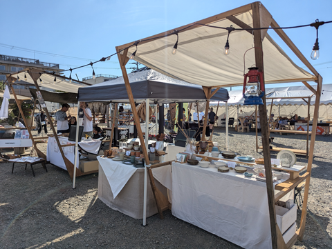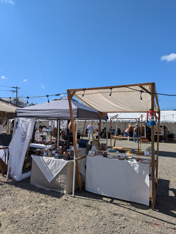 一日中、夏日で暑いくらいの気候でしたが当ブースは軒下の日が当たらない場所で快適に過ごすことが出来ました。(タープを持っていっていなかったのでとてもラッキーでした。)穏やかながらもたくさんの方が立ち寄って下さって疲れが吹っ飛ぶ一日でした。
