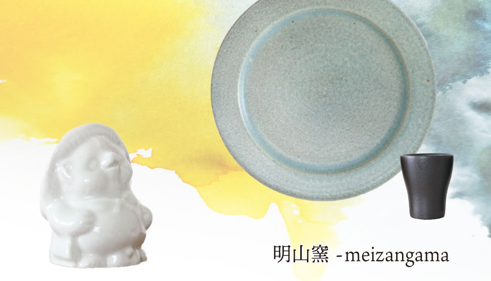 さて、新しく取り扱いになったのは「明山窯」という信楽焼の老舗の窯元さん。創業400年を超える歴史があり、高い技術力と信頼を大切に受け継ぎ伝統を守り続けておられます。また、「常に産地の新しいその先の姿を追い求めていく」という理念も大切にされており、作品には幅広い視点が反映されたオリジナルのブランドを展開し私たちの日常に新しい価値観を提供してくれています。