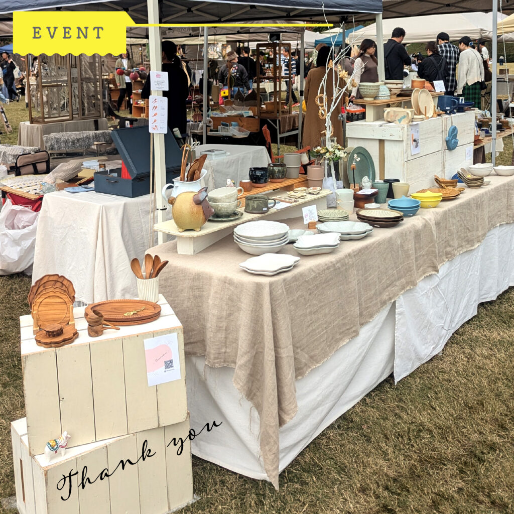 ただ、反省点もありまして、メインテーブルは綺麗にまとまっているように見えるのですが、バックヤードが少しガチャガチャしていて、そちらがまる見えに。こちらは次回の課題にして360度、どこから見ても美しいブースにしていきたいです。