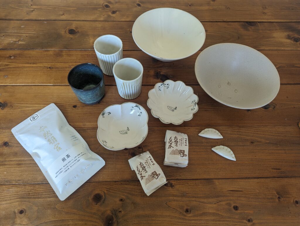 ▶昨年の信楽陶器市で購入したうつわとお菓子