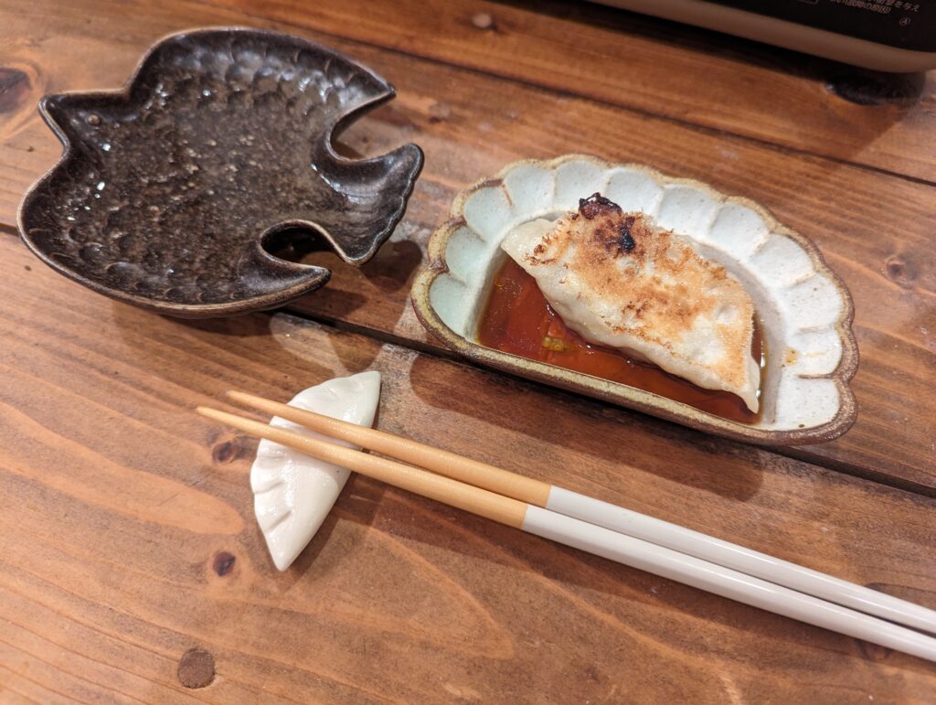 餃子のお箸置きもお箸が転がらないように作られていて安定感がしっかりとあります。餃子の時は100%登場するお箸置きです。