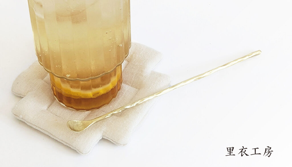 当店のラインナップからお分かりいただけるかと思いますが、里衣工房さんの作品はアルミ合金推しだったりします。完全なる私の好みなのですが、小枝シリーズについては里衣工房さんより「是非真鍮で」とおススメをして頂きました。おススメ頂いた通り、真鍮でお願いをしたのですがこれが大正解。特にマドラーはかき混ぜる時、軽さが特徴のアルミ合金だと混ぜた時の負荷に負けてしまってしっかりと混ぜられなかったかもしれないなと、使った時に一番に思いました。適度な重さが使いやすさにつながるのだな~。