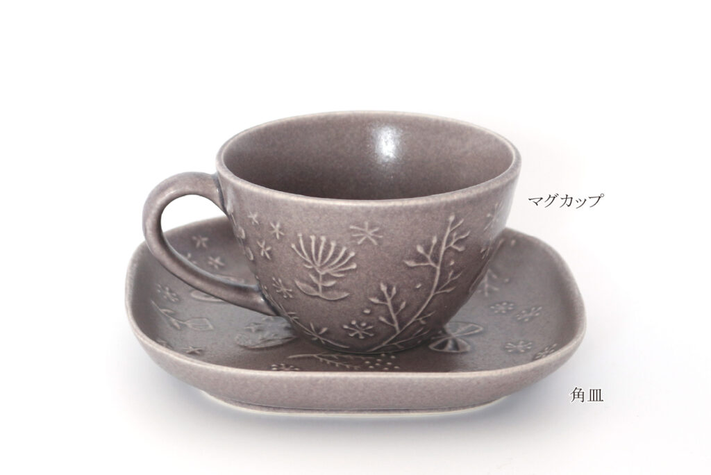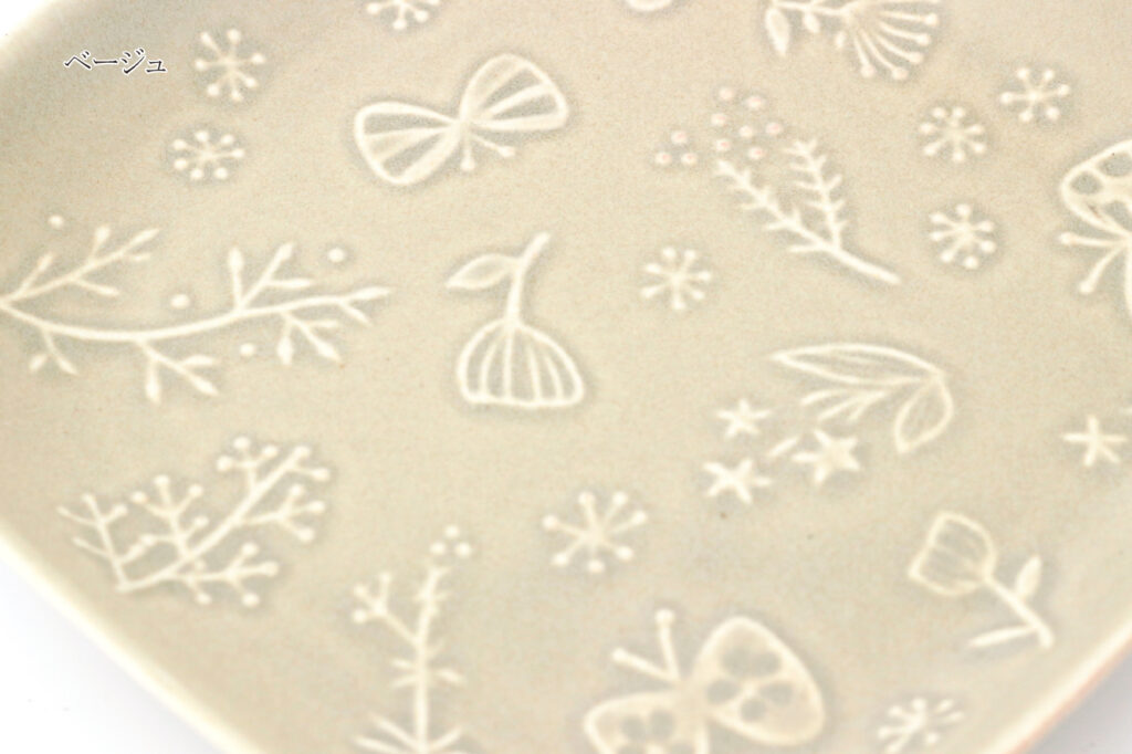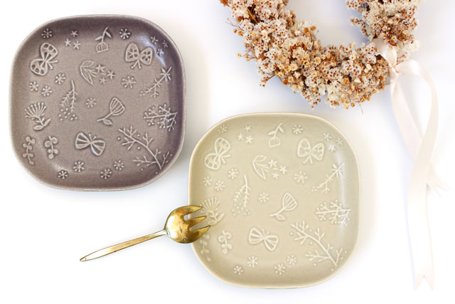 そんな中でひっそりとアップした商品のご案内をさせてください~!ウキウキする春の訪れを表現したかのような蝶々と草花の模様が可愛い『THE FLY EFFECT フライエフェクト』。角皿とカップがございます。カラーは単色使いはもちろん、色違いで並べても可愛いベージュとグレーをセレクト!