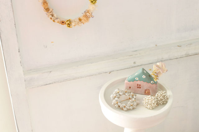 屋根の部分には左右どちらかに小さなあながあって、ドライフラワーを挿してお楽しみ頂ける仕様になっています!
