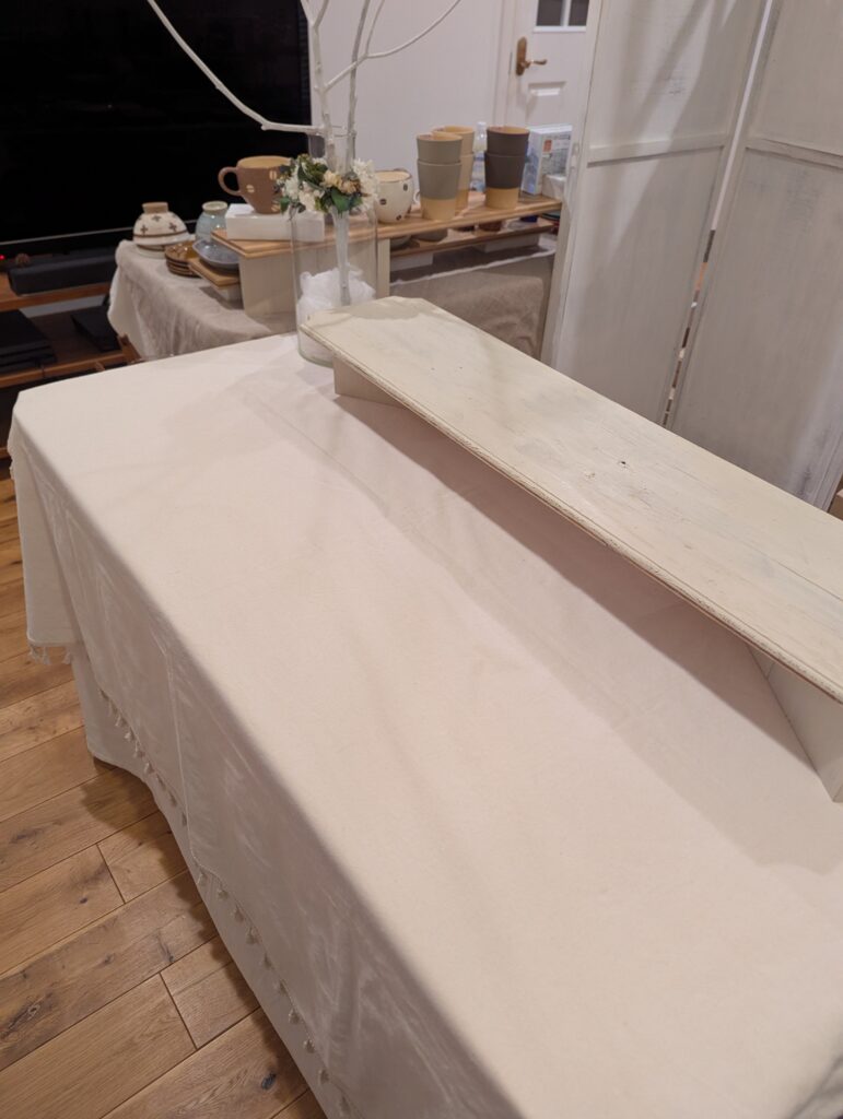もう一つの什器はまだこれから。こちらには作家もののうつわを並べる予定なんですが、並べるアイテムをどうしようかほんっとうに悩んでいます。来週ギリギリまで悩んでみようと思います◎