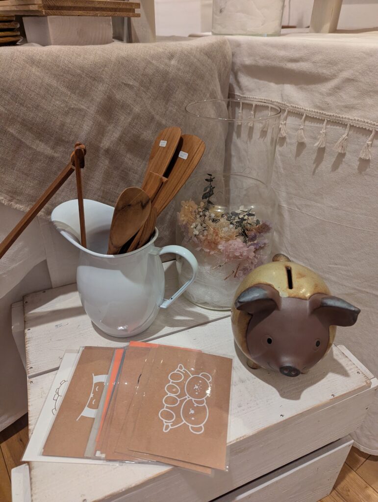 まちまるしぇのブースは2m×2m、和歌山では3m×3mのことが多いのでスペースがコンパクトな分、一つの什器にぎゅぎゅっと詰め込んでしまいがちなのですが、最近の当店のディスプレイは「抜け感」がマイブームですので次回のまちまるしぇは厳選したアイテムを並べて少しすっきりとする予定です。