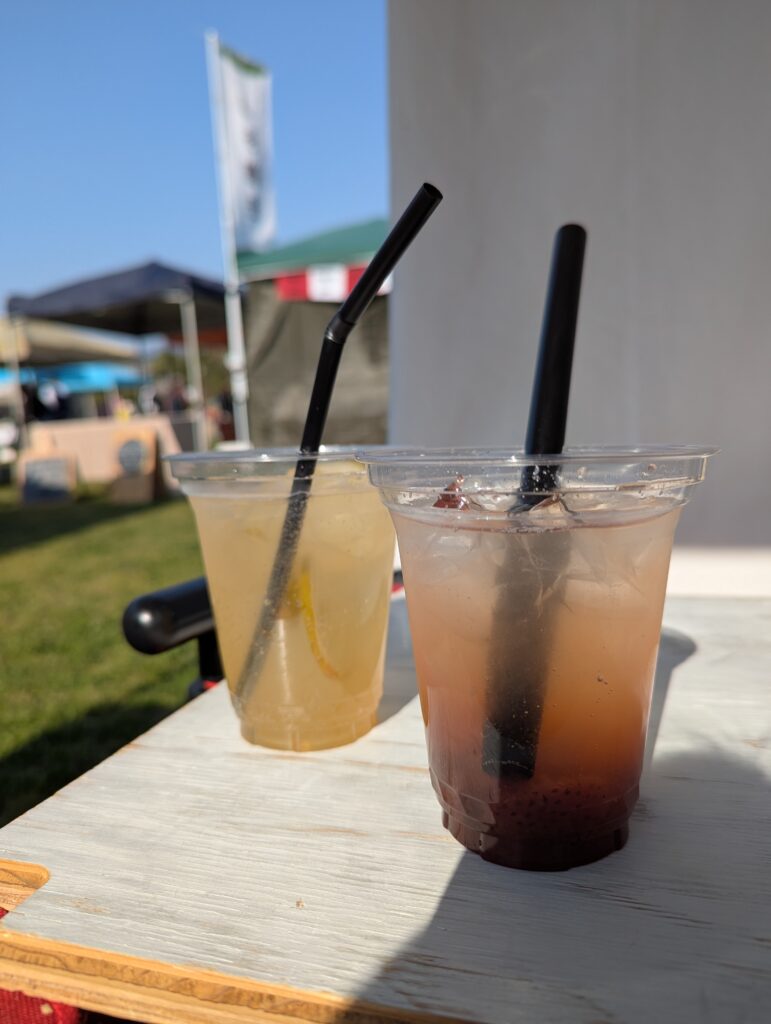 まちまるしぇの出店はすごく久しぶりでした。大好きなイベントなのですが、和歌山の大きなイベントと日程が近くなることが多く、また、少し遠いこともあり体力的にもお店の規模的にも厳しくて少し期間が空いてしまいました。「初めまして」の気持ちで挑みましたが、リピーターの方も来てくださってありがたい限りです。お顔馴染みの出展者さんとも再会できてパワーをもらえました。写真のドリンクはその出店者さんのブースで!