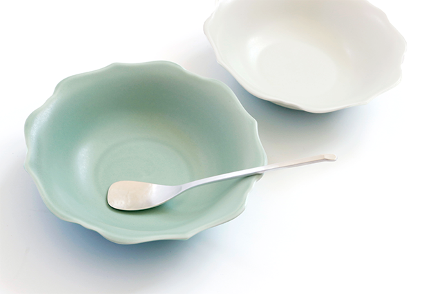 そして、これからの季節にぴったりなうつわたちをピックアップして改めて写真も撮りなおしました!TOJIKITONYAさんの「輪花 リンカシリーズ」。花びらのような縁が愛らしく、涼やかなカラーが綺麗なうつわです。