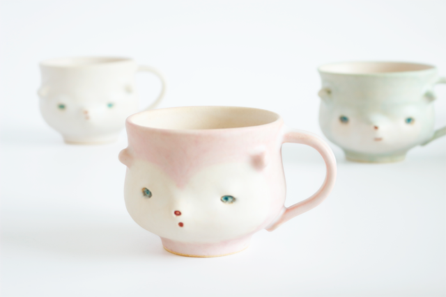 愛らしい表情のお顔のマグカップ。それぞれの個性にぐっと引き込まれます。私のイチオシは目の色とかたち。まるでガラスのような繊細な美しさです。