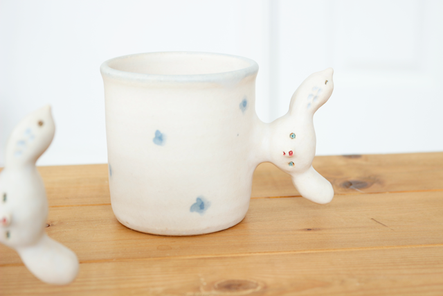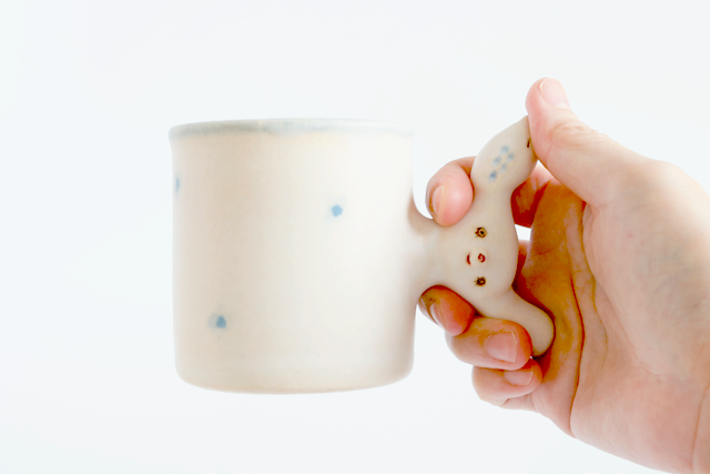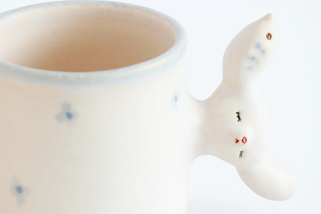 ユニークな持ち手が特徴のマグカップ。安定感のある握り心地ですので実用性も◎うさぎの耳の片方にも顔がついていて、トリのようにも見える不思議な存在です。