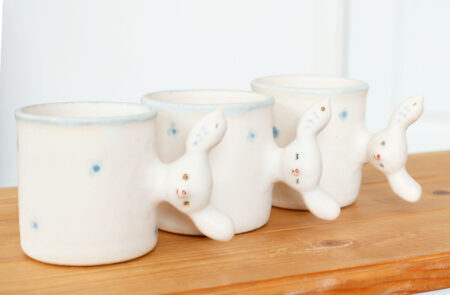 ユニークな持ち手が特徴のマグカップ。安定感のある握り心地ですので実用性も◎うさぎの耳の片方にも顔がついていて、トリのようにも見える不思議な存在です。
